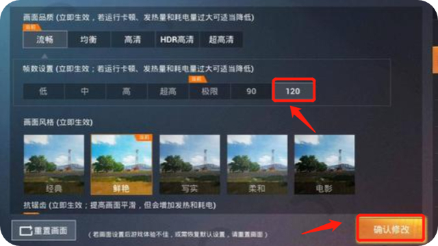 《和平精英》120帧设置方法: