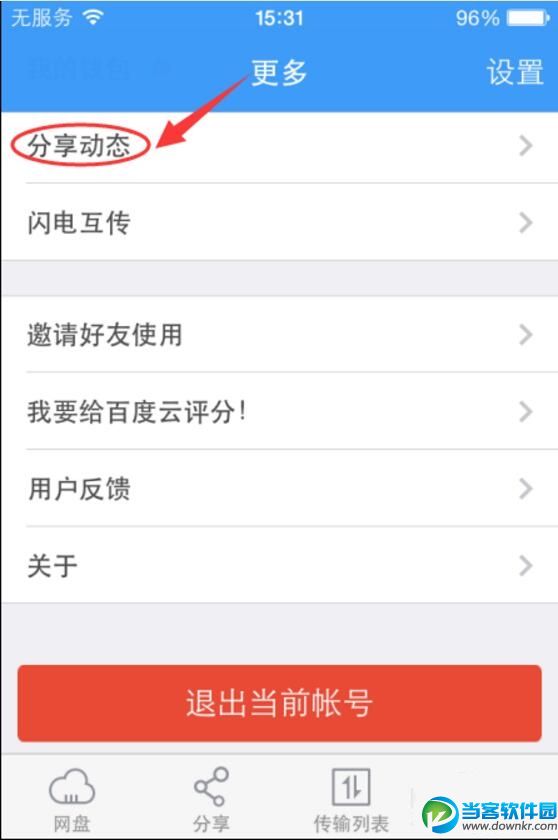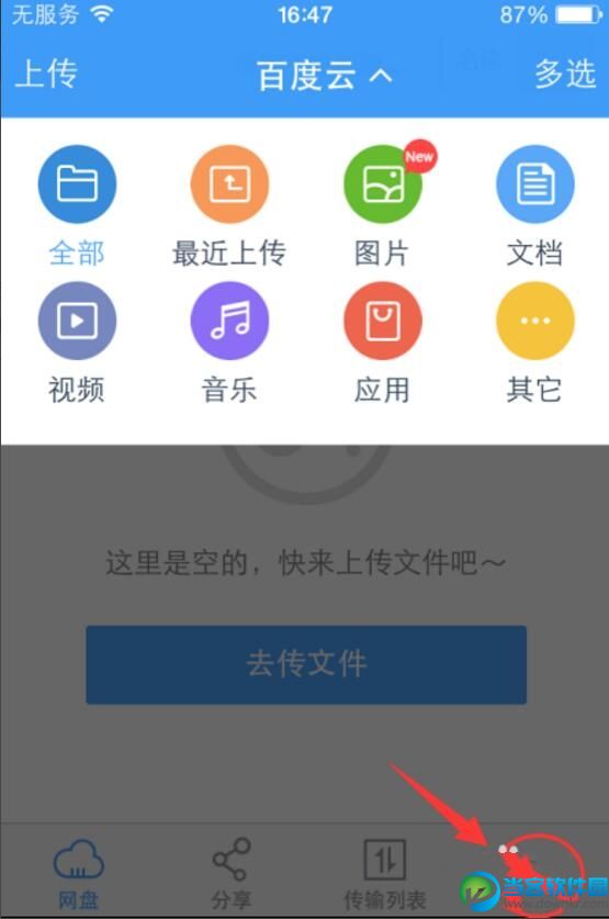 如果大家在第一次使用手机百度云时,肯定里面都是空空的,什么电影视频都没有。那么我们就在百度云右下方按一下“更多”选项进入。