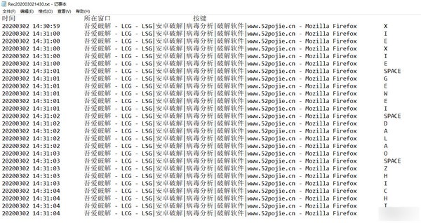 3、按键记录:启动后实时监控电脑上按了哪些键,自定义记录文件保存位置。包括了按键操作的时间、所在窗口标题。