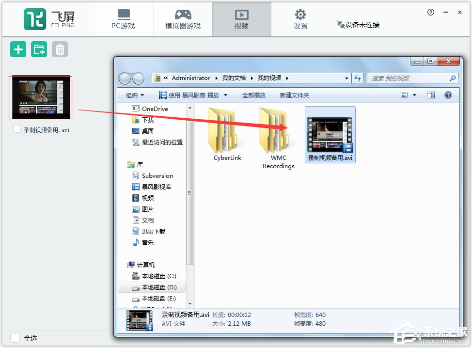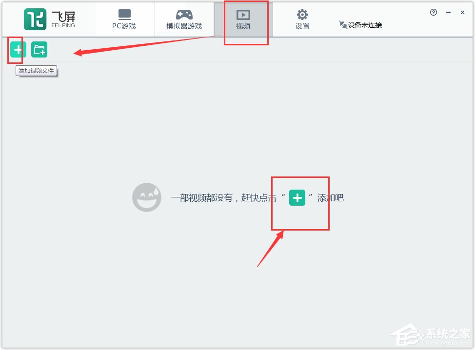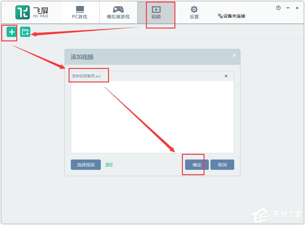 3、在电脑中打开飞屏客户端,根据客户端中的指导,将您电脑中的视频资源添加到飞屏列表中。