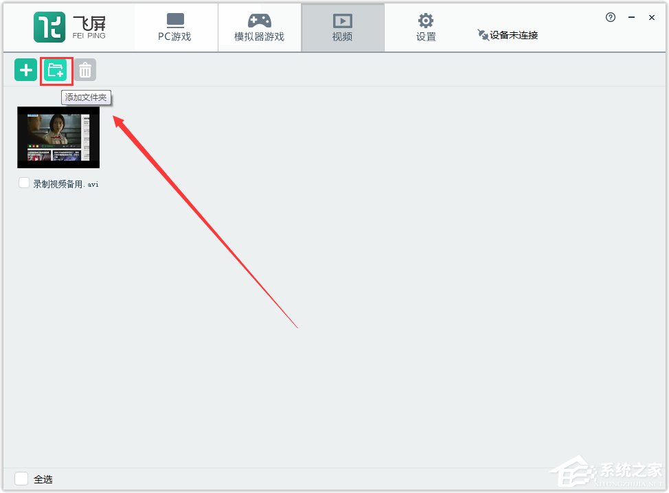 5、您也可以选择添加文件夹。添加文件夹的作用在于您直接将电脑中的文件夹添加至飞屏,当使用电视或魔镜查看飞屏内容时,可以直接看到文件夹内的所有视频。
