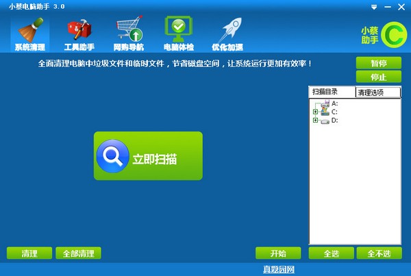 小蔡电脑助手是一款集多种功能为一体的,帮助您方便日常系统优化加速、清理,学习工作、生活网购的工具类软件。小蔡电脑助手拥有系统清理、工具助手、网购导航以及电脑体检等多种功能。系统清理主要清理系统垃圾文件、临时文件、上网历史记录等冗余垃圾。