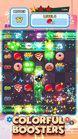 5、您还需要找到那些具有最棒的连锁反应的三连消:和其他消除类游戏类似,连锁反应也是粉碎汉堡中一个重要的元素。玩家需要触发连锁反应,以获得更高的得分,并解锁更多有趣的道具和关卡。
